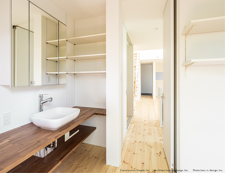 SIMPLE NOTEには普通の家には当たり前のようにあるものがありません。従来の家にある多くの無駄を省いているからです。例えば廊下。部屋と部屋を繋ぐだけの空間に、はたして貴重なコストやスペースを無駄に使う必要があるのでしょうか。廊下を必要としない間取りを組むことが出来たのなら、余計な建築資材を使わずに済みます。このように廊下ひとつとってみても、無駄を省くことで質を落とすことなくお金の負担を軽減できるのです。